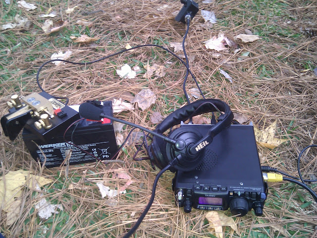 I started out with a Yaesu 817, which is a tiny radio that does everything. However, it’s quite heavy (2.6 pounds) and eats battery quickly (around 400mA just on receive!) This forced me to carry an external battery. And because I often need to tune my antenna, I had to carry an external tuner. All in all, the parts filled a camera bag by themselves.